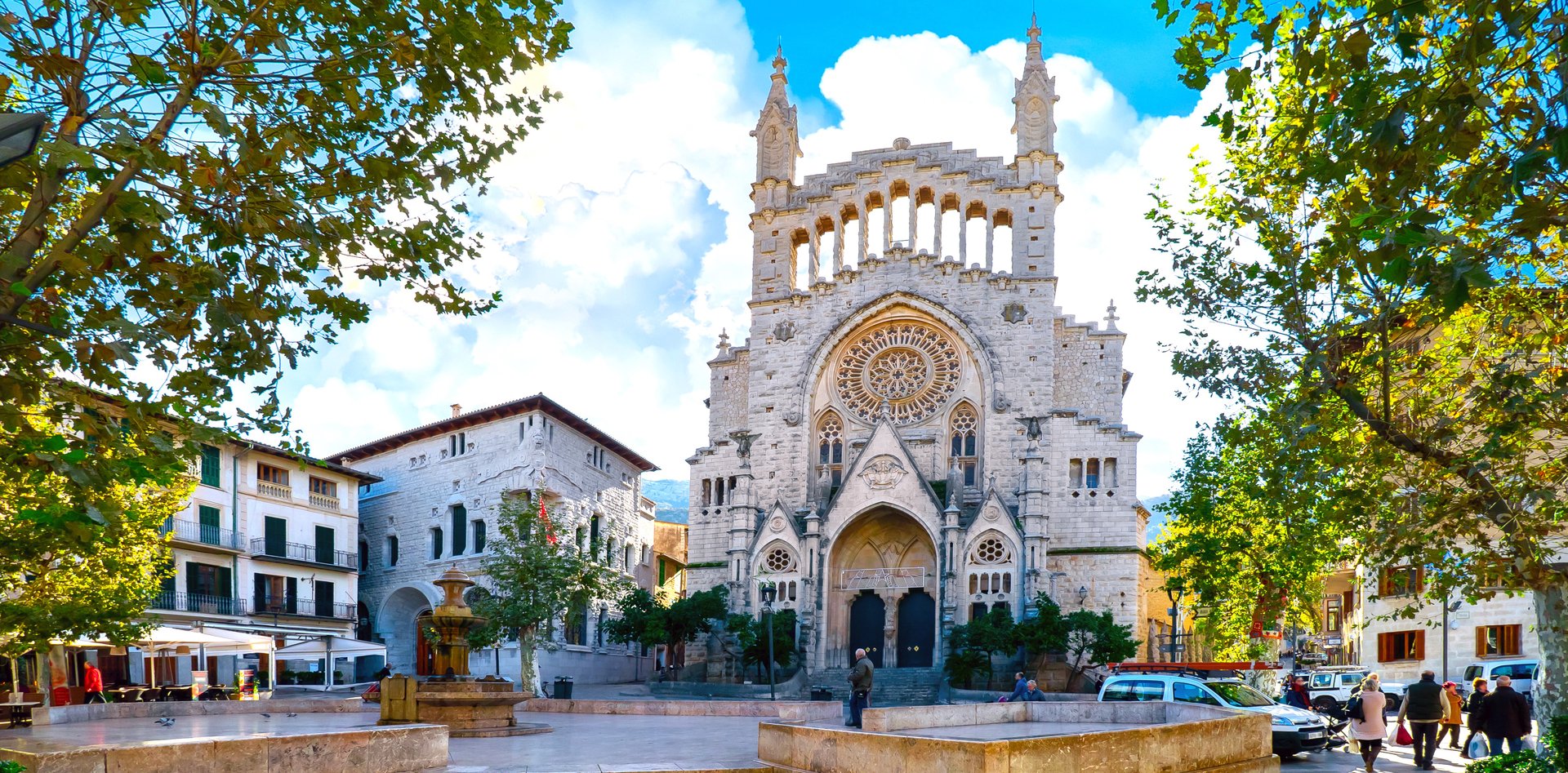 Durante el recorrido, visitarás la icónica Estación de Tren y Tranvía de Sóller, símbolo del patrimonio y orgullo del pueblo. La estación, con sus vagones de madera bellamente conservados, ha conectado Sóller con Palma durante más de un siglo, siendo una parte fundamental de la historia y el desarrollo de la localidad. También explorarás la magnífica Iglesia de San Bartolomé, una asombrosa combinación de estilos barroco, modernista y neogótico. Su impresionante fachada, diseñada por Joan Rubió i Bellver, discípulo de Gaudí, refleja el espíritu artístico que floreció en Sóller a principios del siglo XX. Al estar en la Plaza de la Constitución, sentirás cómo esta vibrante plaza ha sido el corazón de la vida comunitaria durante generaciones.